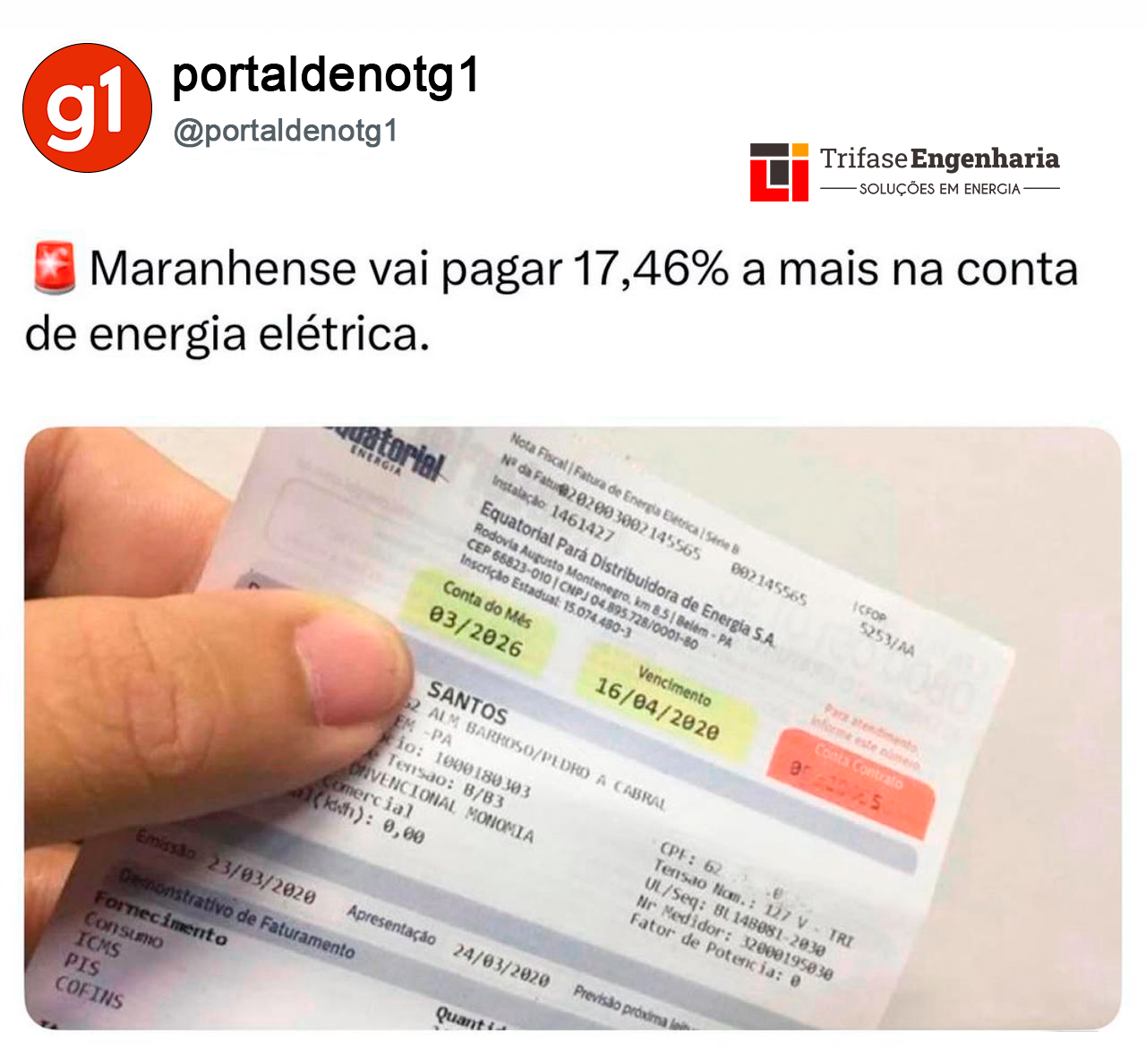 A Agência Nacional de Energia Elétrica (Aneel) aprovou um reajuste de 17,46% na tarifa de energia elétrica no Maranhão.
